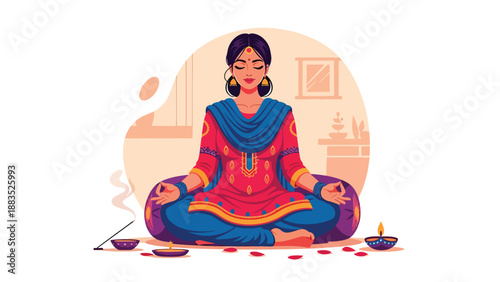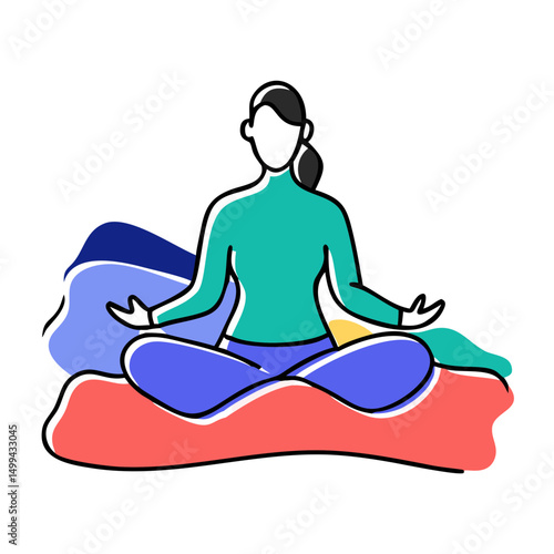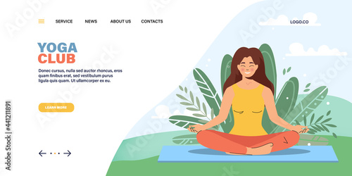 Žena dělá Sukhasana nebo Easy jóga představovat, vektorové ploché ilustrace izolované na bílém pozadí. Pohodlná poloha pro meditaci. Jóga, základní postoje nebo ásany koncept pro web banner atd.