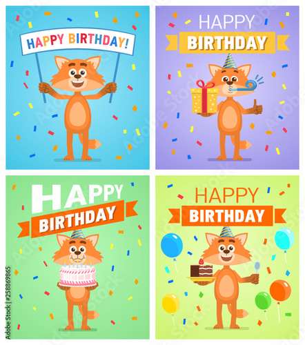 Letní sada karet, vektorové ručně kreslené ilustrace. Ahoj léto, aloha, miluji léto, letní prázdniny kaligrafie s roztomilými zvířaty veverka, ježek, medvěd, liška, zajíček a mýval.
