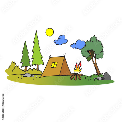 Letní bbq scéna. Muž ležící v houpací síti a čtení knihy v parku, ploché vektorové ilustrace. Letní venkovní piknik, bbq party.