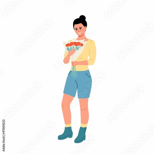Muž nesoucí letní čerstvé ovoce a kukuřici, vektorová plochá ilustrace izolovaná na bílém pozadí. Letní prázdniny, léto, cestování.