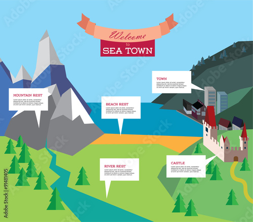 Letní kempování, vektorové plakát banner šablony. Vrstvené papírové řezané lesní kopce, přívěs pro karavany a táborák na břehu jezera nebo řeky. Kempování karavanů, letní rekreace.