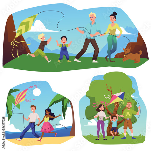 Šablona webových stránek vstupní stránky kempu. Vektorové ilustrace lidí stojících vedle táboráku a stanu v lese. Letní kempování, turistika, trekking koncept.