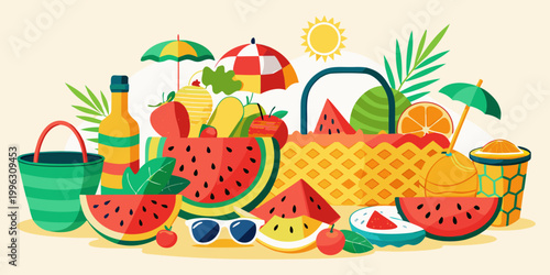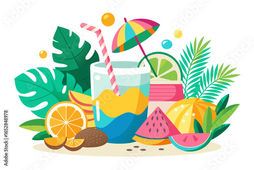 Letní nápoj beach bar menu vektorové design ilustrace. Párty na tropickém pobřeží během prázdnin s plakátem na alkoholické nápoje. Vibrant brožura abstraktní vzor