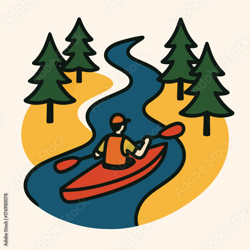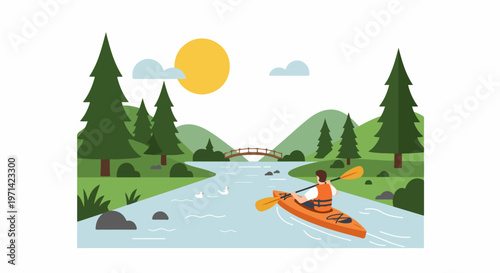 Letní rekreační koncept vektorový banner v plochém stylu. Lidé kempují v národním parku forest.