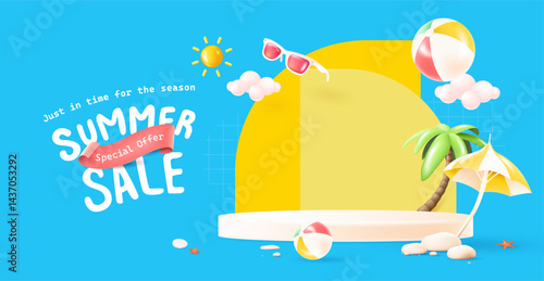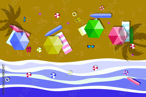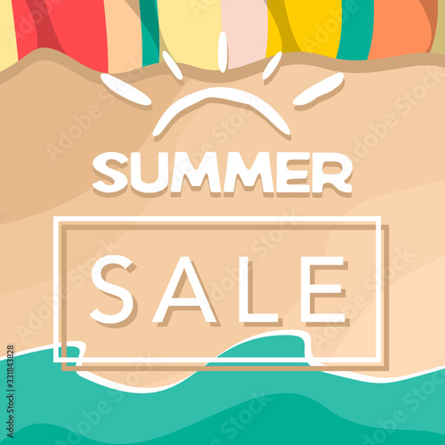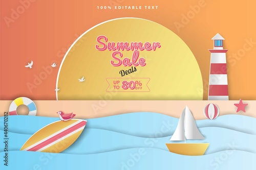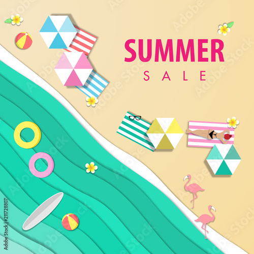 Letní výprodej concept vector banner. Tropická pláž ve stylu papírového umění. Obrázek řezu papíru shora. Letní dovolená dovolená plakát šablona. Řemeslné origami.