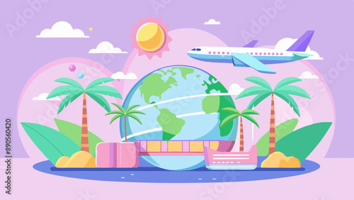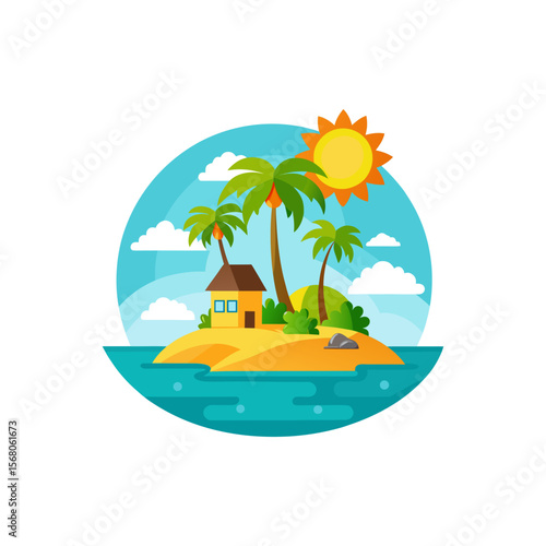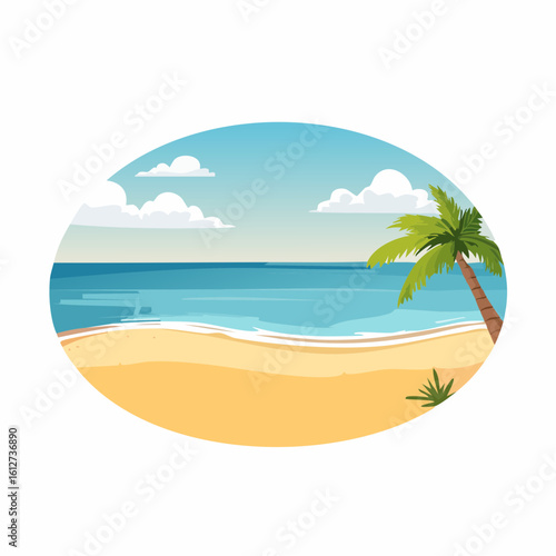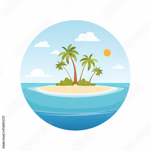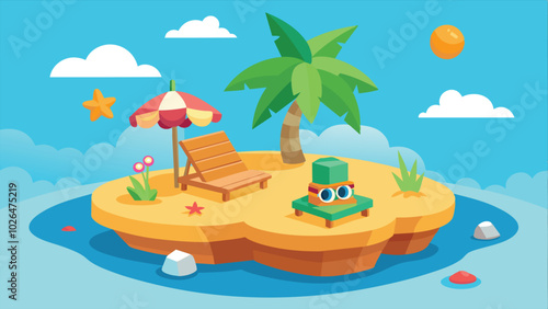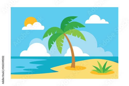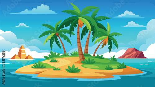 Letní moře pláž vektor. Cestovní papír řez umění plakát. Tropická dovolená dovolená pozadí. Origami ostrov s palmou, oceánskou vodní vlnou a oblohou. Dobrodružství a turistika