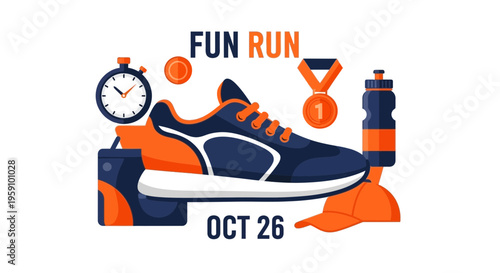 Letní prázdniny vektorové ploché ilustrace. Plážové doplňky žabky, sluneční brýle, hvězdice, plátek melounu exotické ryby potápěčská maska a ruka drží opalovací krém. Letní dovolená na pláži plakát banner