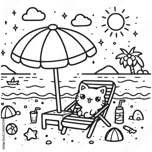 Letní prázdniny vektorové ploché ilustrace. Plážové doplňky slunečník plavky žabky kokosový koktejl sluneční brýle fotoaparát a sklenici limonády. Letní dovolená na pláži plakát banner.