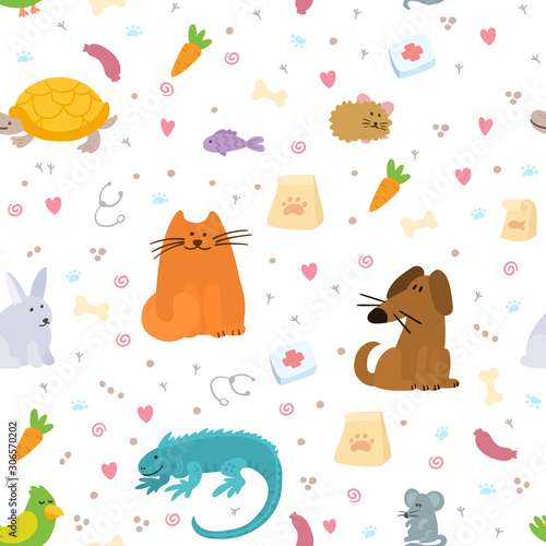 Letní bezešvé vzor. Vektorové ručně tažené liška v sluneční klobouk se slunečními brýlemi, kokosové mléko, kufry a plátky melounu.