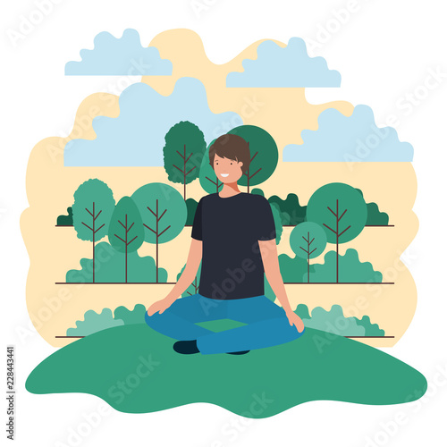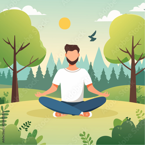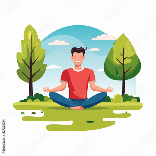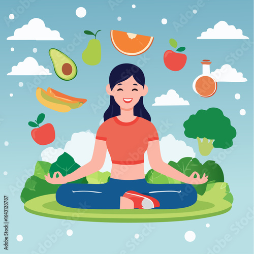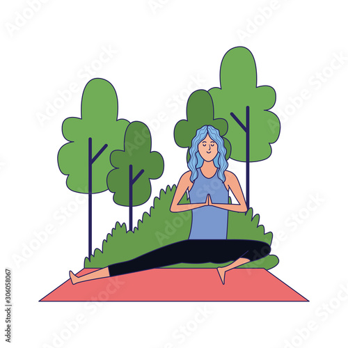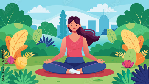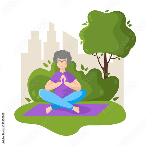 Letní jóga plakát design šablony, ploché vektorové ilustrace. Mladé ženy cvičí jógu v parku. Zdravý životní styl, venkovní cvičení.
