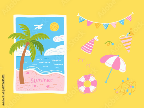 Opalovací krém balení trubky, papír řezané exotické pláž pozadí, slunečník, žabky, brýle v kulatém rámu, vektorové ilustrace. Krém na ochranu proti spálení sluncem, šablona reklam na kosmetické přípravky pro letní krásu.