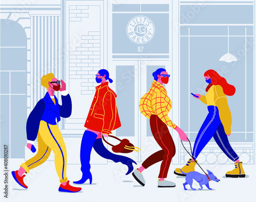 Superhero rodina, ploché vektorové ilustrace. Šťastná usměvavá máma, táta, roztomilé děti a pes na sobě pláštěnku, masky, kostýmy superhrdinů, pozadí Panoráma města.