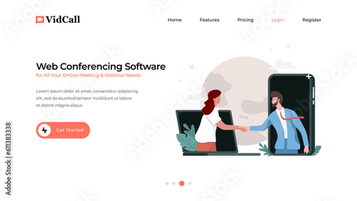 Centrum podpory vektorové šablony webových stránek, návrh webových stránek a vstupních stránek pro vývoj webových stránek a mobilních stránek. Operátorka v náhlavní soupravě poskytující informace o produktu, řešení FAQ a problémů.