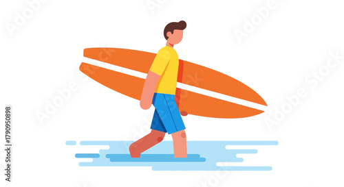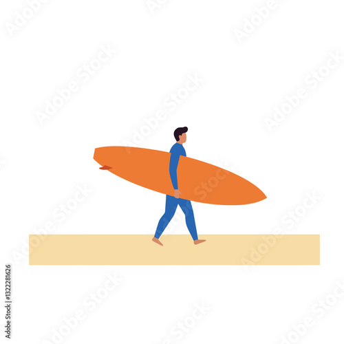 Vektorové ilustrace surfař nesoucí Surf. Letní lidé koncept plochý styl designový prvek, ikona izolován na bílém pozadí.