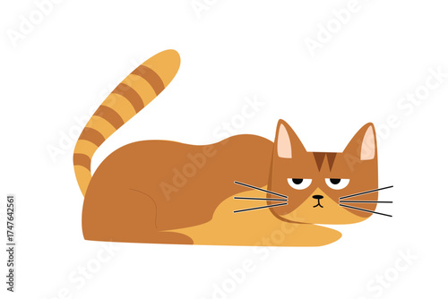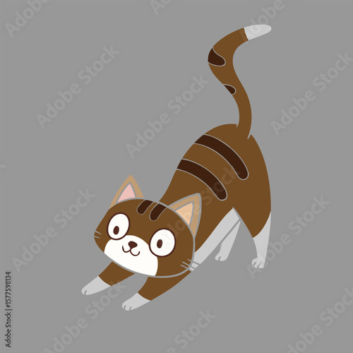Roztomilý kočka vektor. Kreslené zvíře. Ilustrace postavy kotě. Legrační pruhované pet ukazuje překvapený ohromen náhubek emoce ikona izolovaných na bílém pozadí