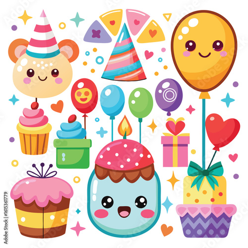 Sada ikon sladkých bonbónů. Vektorové ilustrace izolovaných na bílém pozadí. Sladkosti, lízátka, bonbóny, sladké domy.