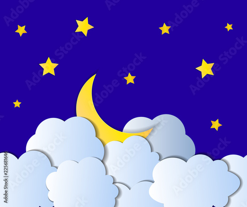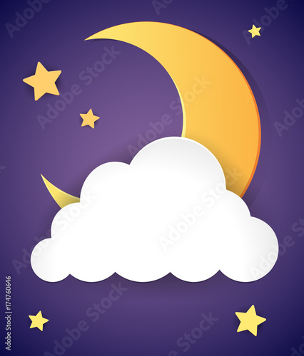 Vektor vrstvený papír střih styl roztomilý medvídek spí na půlměsíc, dobrou noc nápisy. Kreativní krásné sladké sny kompozice pro kartu, banner,leták, plakát atd.