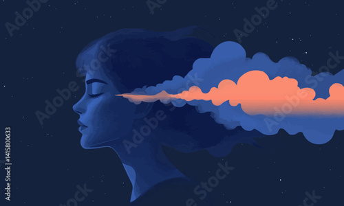 Vektorové vrstvený papír střih styl hvězdná noční obloha s velkým medvěd souhvězdí, půlměsíc a portrét krásné ženy se zavřenýma očima. Koncept Sweet dreams pro kartu, banner,leták, plakát atd.