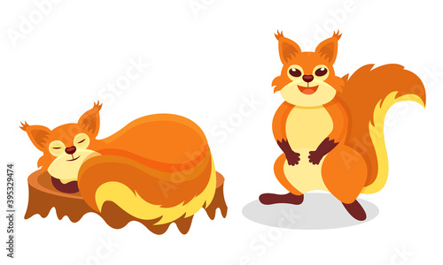Sladké srdce rozkošný zvířecí rodina vektor. Veverka pár v lásce ikona. Lesní romantický pár složený ocas v srdci. Svatební pozdrav pohlednice izolovaných znak na bílém pozadí