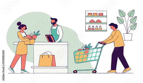 Tiny šťastní lidé dělat velký chutný třešňový košíček, vektorové ilustrace. výroba cukrovinek, cukrovinek, složení pečiva pro webový banner, webovou stránku atd.