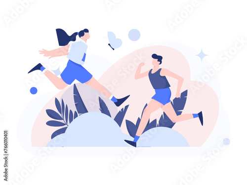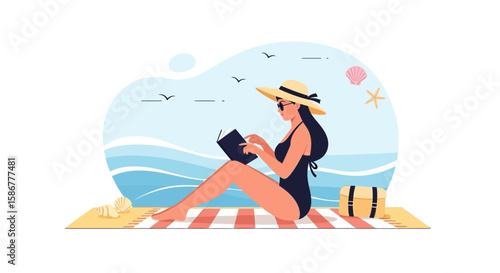 Mužské a ženské postavy odpočívající v bazénu, vektorové ilustrace. Beach resort Hotel bazén, vodní rekreační aktivity koncept pro web banner, webové stránky atd.