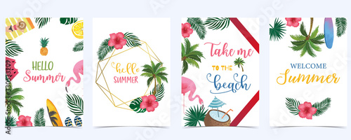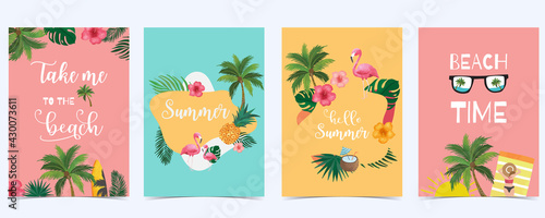 Symmer brach dovolenou bezešvé vzor. Vektorová sada květinových vzorů pozadí. Ananasové ovoce, rekreační prvky, květiny mirabilis.