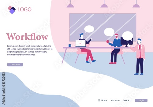 Tailor shop vektorové webové stránky šablony, webové stránky a vstupní stránky design pro webové stránky a mobilní vývoj webu. Šicí dílna, ateliér, vlastní koncept oblečení s mikro znaky, obrovský manekýn.