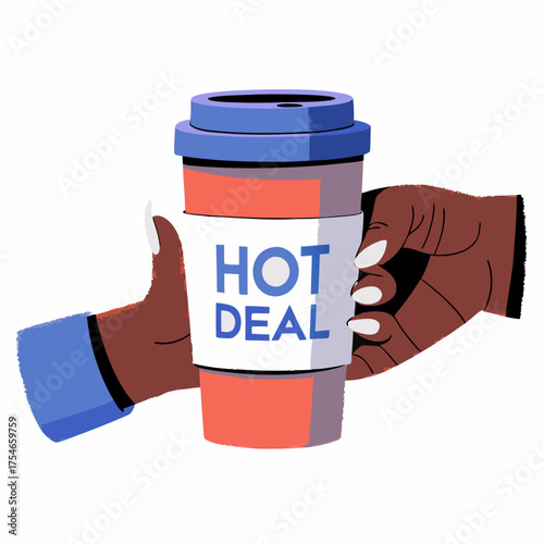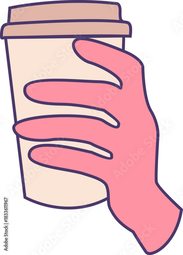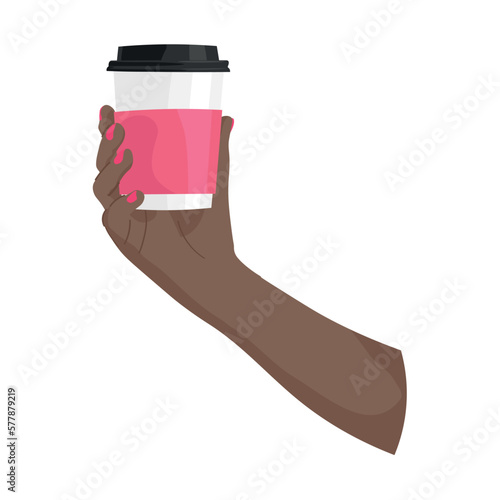 Stánek s jídlem šálek s kávou v ruce vektorové ikony izolovaných na bílém pozadí