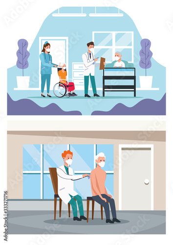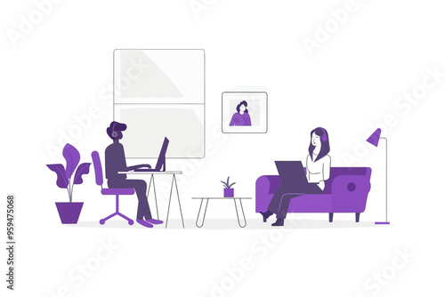 Vektorová ilustrace veterinárního lékaře, který mluví se ženou o diagnóze po lékařské prohlídce svého psa. Vet clinic services concept designový prvek v plochém stylu.