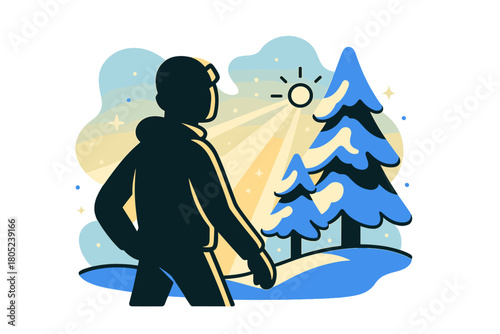 Vektorová ilustrace usměvavého Eskymáka, Chukchi postava hrající tamburínu. Arktická krajina, Severní lidé životní styl plochý styl designové prvky.