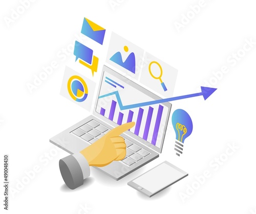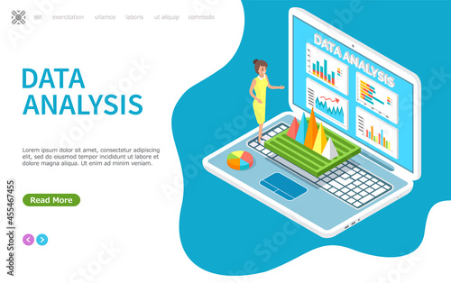 Šablona webových stránek vstupní stránky automatizace úkolů. Vektorové izometrické ilustrace laptop a robot ramena, ozubená kola, hodiny kolem něj. Koncepce automatizace Workflow.