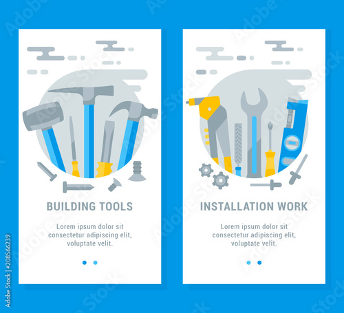 Tattoo shop nástroje a příslušenství, tetování stroj, barva mixer, jehla, znecitlivující gel. Mobilní aplikace onboarding obrazovky. Nabídka vektorový banner šablona pro webové stránky a mobilní vývoj. Design webových stránek plochý ilustrace.
