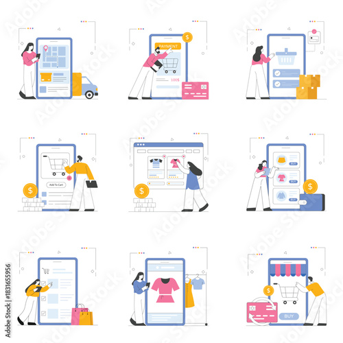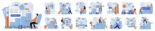 Daňový čas, platba, vrácení vektorové koncepce ilustrace sada izolovaných na bílém pozadí. Účetní závěrka a daně, daňové přiznání, daňoví poplatníci.