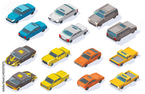 Žlutá taxík na smartphone, městské budovy, umístění pin, kreditní karta, vektorové ploché izometrické ilustrace. Mobilní aplikace taxi, koncept online plateb.