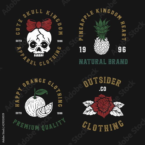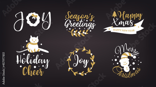 Čajový znak, logo, odznak a sada štítků, vektorové ručně kreslené ilustrace v retro stylu. Tea house shop cafe vintage ruční nápisy typografie.