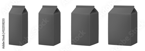 Černý čaj balíček maketa set, vektorové ilustrace. Realistické prázdné krabice na balení čaje, sáčky s průhlednými okny a čajovým sáčkem.