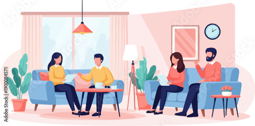 Tea typografie banner šablona, ploché vektorové ilustrace. Lidé, mužské a ženské postavy, kteří pijí čaj, sedí na velkých dopisech a mluví mezi sebou. Čajovna, Čajovna.