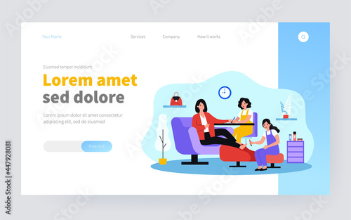 Učitel a student ve školní třídě. Dívka sedí na útulné pohovce a sledování filmu s titulky. Koncept ilustrace. Vektor web design šablony. Vstupní stránka webové stránky ilustrace