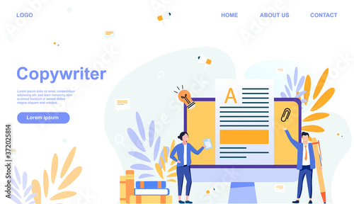 Business people team micro mužské a ženské postavy pracující na obrovském notebooku, křičí megafonem, dívá se dalekohledem, vektorová plochá ilustrace. Týmová práce obchodní koncept.