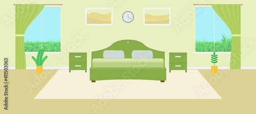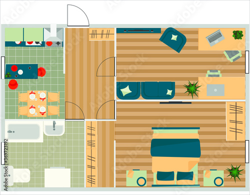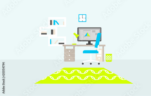 Teenager interiér ložnice objekty v plochém stylu. Vektorové ilustrace. Dům pokoj designové prvky a ikony.
