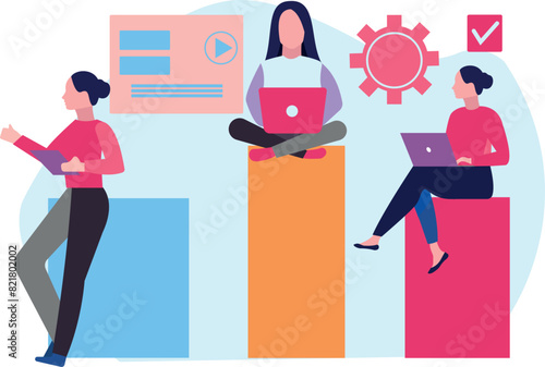 Dospívající dívky sousedé vektorové ikony izolovaných na bílém pozadí