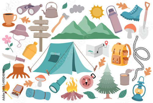 Thajsko ikony a cestovní symboly izolované set. Slavné turistické atrakce, národní jídlo a pití, sport a zábava, tradiční vlajka, doprava a budovy vektorové ilustrace