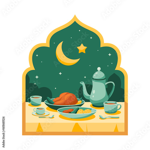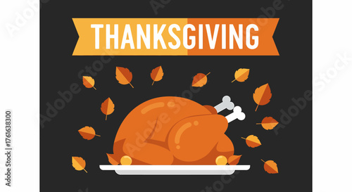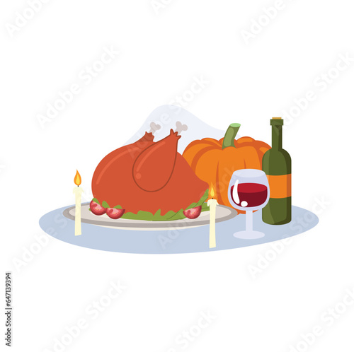Den díkůvzdání vektorové ploché ilustrace. Tradiční pečená krůta, červené víno, žaludy, dýně, svíčky a kalendář. Šťastný Den díkůvzdání oslava koncept pro web banner, webové stránky atd.