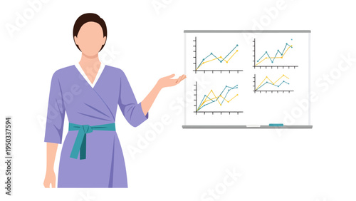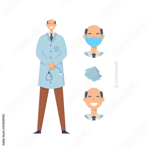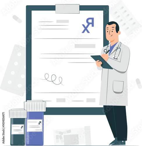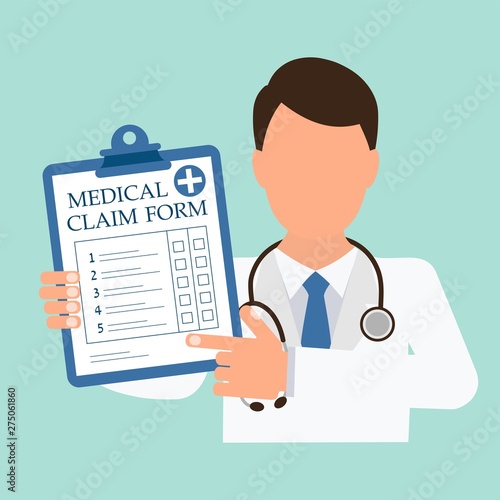 Vektorová ilustrace usmívající se ženy v bílém plášti se stetoskopem a držící schránku v ruce. Lékařský lékař terapeut plochý designový prvek, ikona izolovaná na bílém pozadí.