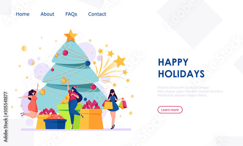 Tři přítelkyně tančí v místnosti. Hudební party a disco koncept. Vektor web design šablony. Vstupní stránka webové stránky koncept ilustrace.
