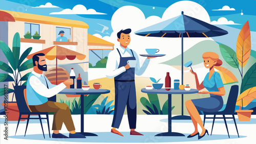 Tři holky si dělají selfie v baru. Kamarádky se setkávají u stolu v restauraci. Vektor web design šablony. Vstupní stránka webové stránky koncept ilustrace.