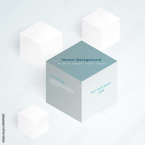 Tři bílé 3D cube box vektorové ikony. Perspektivní pevný geometrický blok. Izometrický prázdný model izolovaný