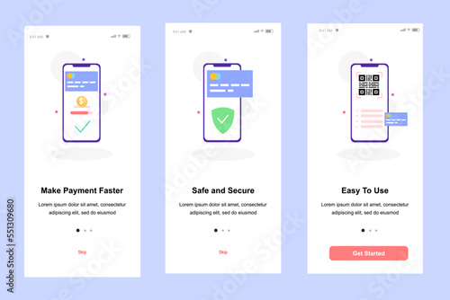 Kino, vstupenky na koncerty a divadla mobilní aplikace onboarding obrazovky. Menu banner vektorová šablona pro vývoj webových stránek a aplikací.