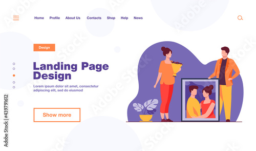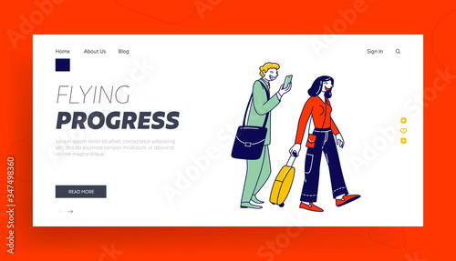 Tickets service vector website template, design vstupní stránky pro vývoj webových stránek a mobilních stránek. Zábavní a cestovní samoobslužný stánek s lístky, mužské a ženské postavy se zavazadly.