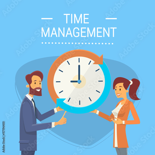 Čas vypršel koncept vektorový plochý styl designu ilustrace. Drobné postavy podnikatelů, kteří se snaží vrátit ruce obrovských hodin. Koncept řízení času pro webový banner, webovou stránku atd.